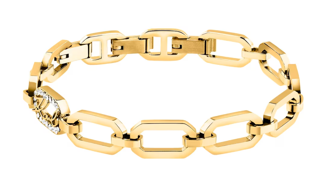 раслет воплощает в себе эстетику рок шика в сочетании с геометрическими деталями. Фирменный логотип Карла Лагерфельда добавляет сдержанный завершающий штрих. Браслет на руку для женщины прекрасно подойдет как для повседневного ношения, так и для вечернего образа, и станет отличным подарком на любой праздник. Регулируемый размер от 16 до 19 см.