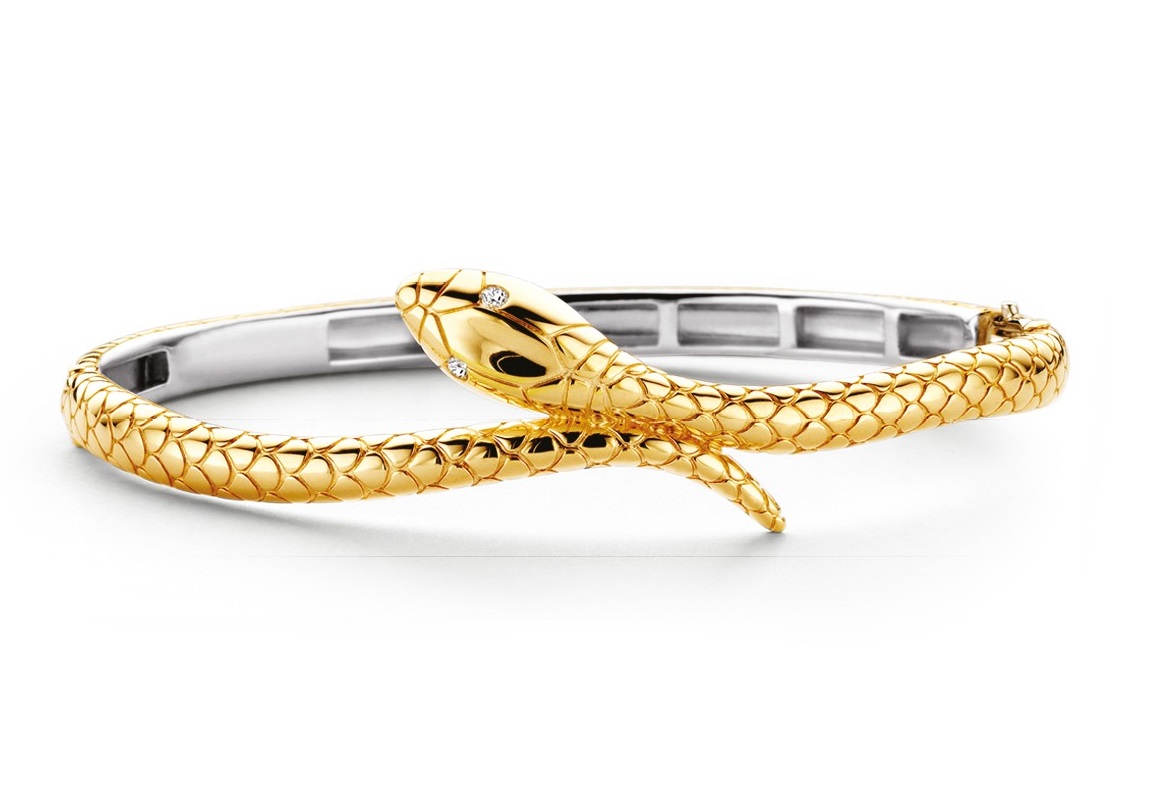Этот позолоченный браслет в виде змеи придаст изысканности вашему образу, изящно обвивая запястье. Она привлечет всеобщее внимание. Благодаря надежному замку она всегда будет с вами.