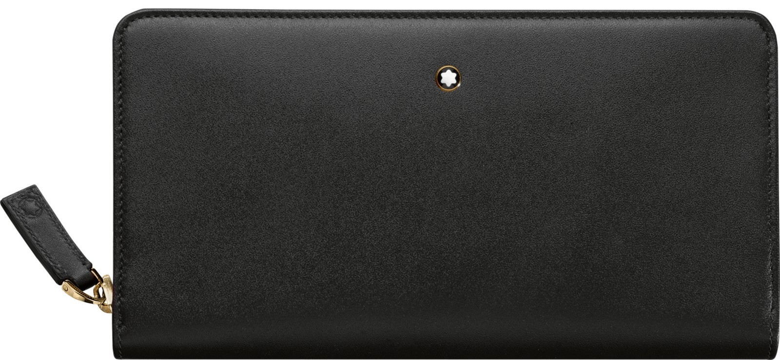 Бумажник MONTBLANC Meisterstuck. Внутри 8 отделений для кредитных карт, 3 отделения для купюр, 1 отделение на молнии, 2 дополнительных отделения. Эмблема Montblanc, кольцо с золотым напылением.