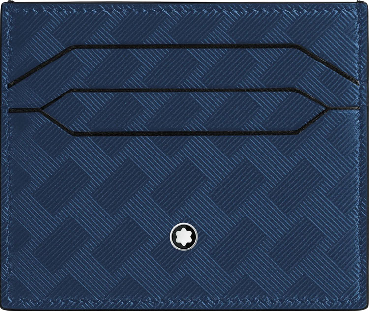 Кредитница из синей натуральной кожи с тисненым узором. Имеет 6 отделений для кредитных карт и дополнительный открытый карман. Габаритные размеры 7 х 11 см.