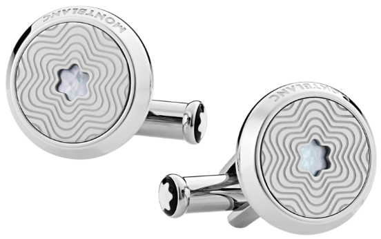 Круглые запонки Montblanc Star из нержавеющей стали с расходящимся волнами узором в виде звезды и эмблемой Montblanc из перламутра отражают эстетические каноны Дома. Эта коллекция представляет различные интерпретации эмблемы Montblanc.