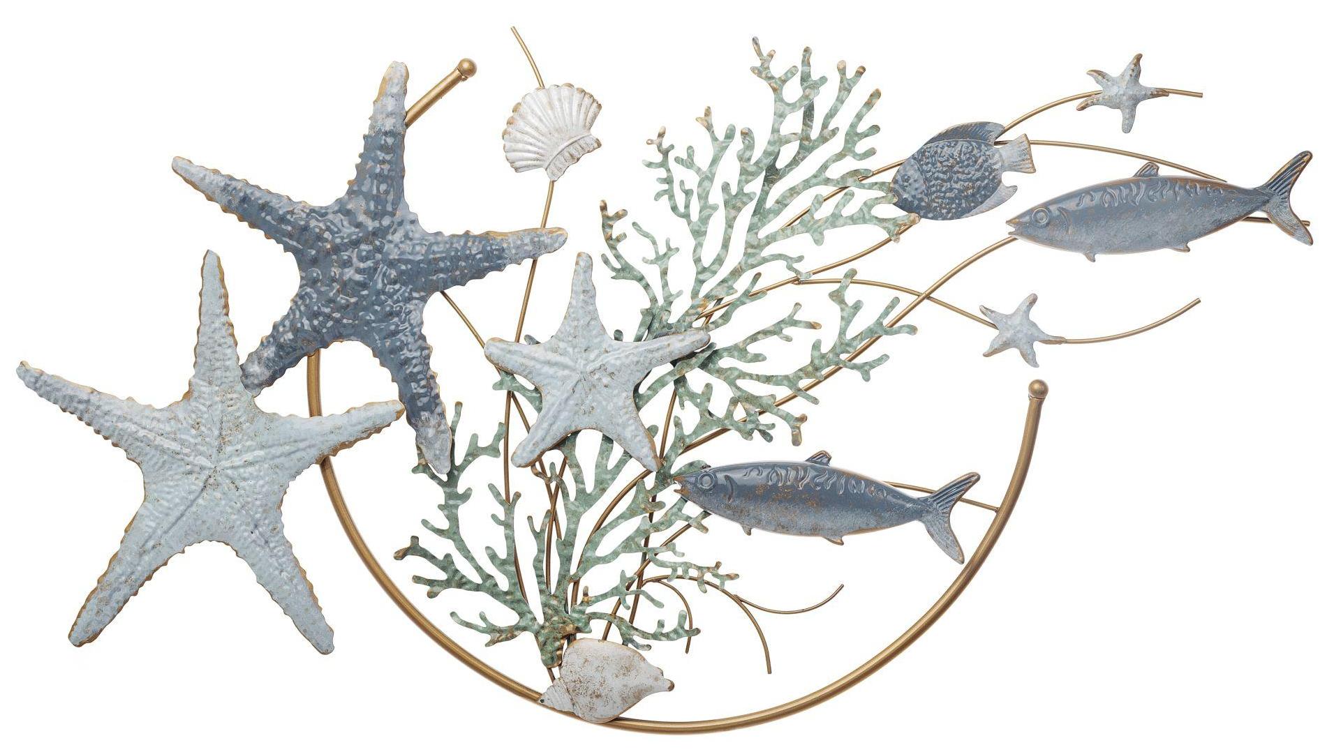 Декоративное металлическое настенное панно морской тематики с объемными элементами. Размеры 95 х 53 х 5 см.