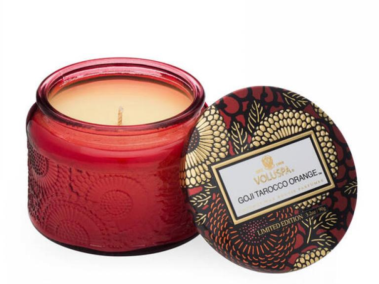 Красные ягоды годжи за способность бодрить и пикантные кисло-терпкие ноты в аромате называют тибетским барбарисом. Уникальный сорт апельсина с насыщенно красной мякотью именуют тарокко. Эти два необычных растения определили характер ароматической композиции, ставшей основой свечи Китайская ягода и красный апельсин.
