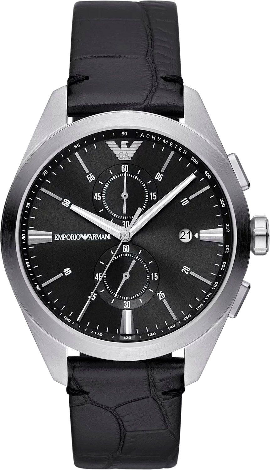 Тип Наручные часы Пол Мужские Страна Италия Механизм Кварцевый Крепление Ремешок Стекло Минеральное Форма корпуса Круг Размер корпуса, мм 43 Материал корпуса Сталь Цвет корпуса Черный Водозащита, м 50 Циферблат Стрелки Цифры Метки Цвет циферблата Черный Дополнительные функции Дата, Хронограф -