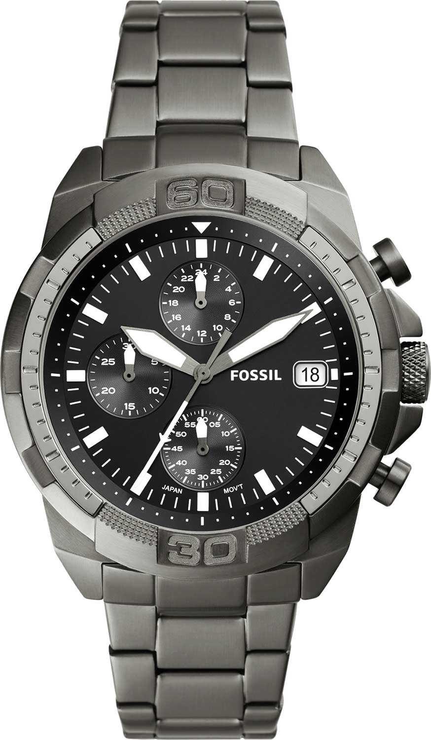 Тип Наручные часы Пол Мужские Страна США Механизм Кварцевый Крепление Браслет Стекло Минеральное Форма корпуса Круг Размер корпуса, мм 44 Материал корпуса Сталь Цвет корпуса Черный Водозащита, м 50 Циферблат Стрелки Цифры Метки Цвет циферблата Черный Дополнительные функции Дата, Хронограф -
