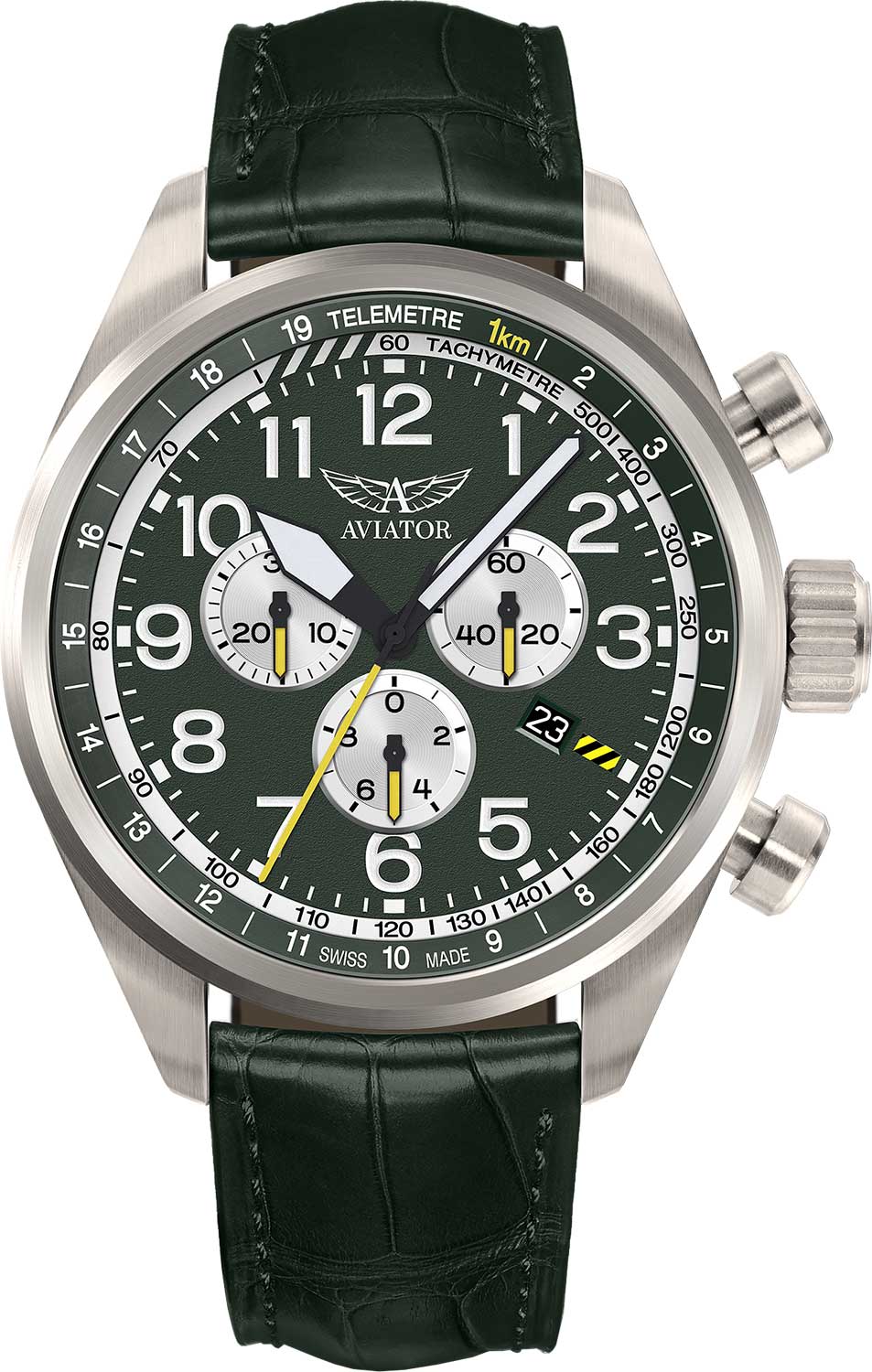 Швейцарские часы Aviator Airacobra V.2.25.8.172.4 созданы для мужчин. Источником вдохновения для создания часов Aviator Airacobra P45 Chrono послужил истребитель «Аэрокобра», выпускавшийся США в период Второй мировой войны и поставлявшийся по ленд-лизу армии СССР. Этот боевой самолет оказал несравненную помощь в победе над военно-воздушными силами противника, отличаясь несравненной огневой мощью. На «Аэрокобре» летали такие асы как Александр Покрышкин или Григорий Речкалов. Его надежность и эффективность вдохновили швейцарскую марку на создание часов, которые обращают на себя внимание своим авиационным дизайном.