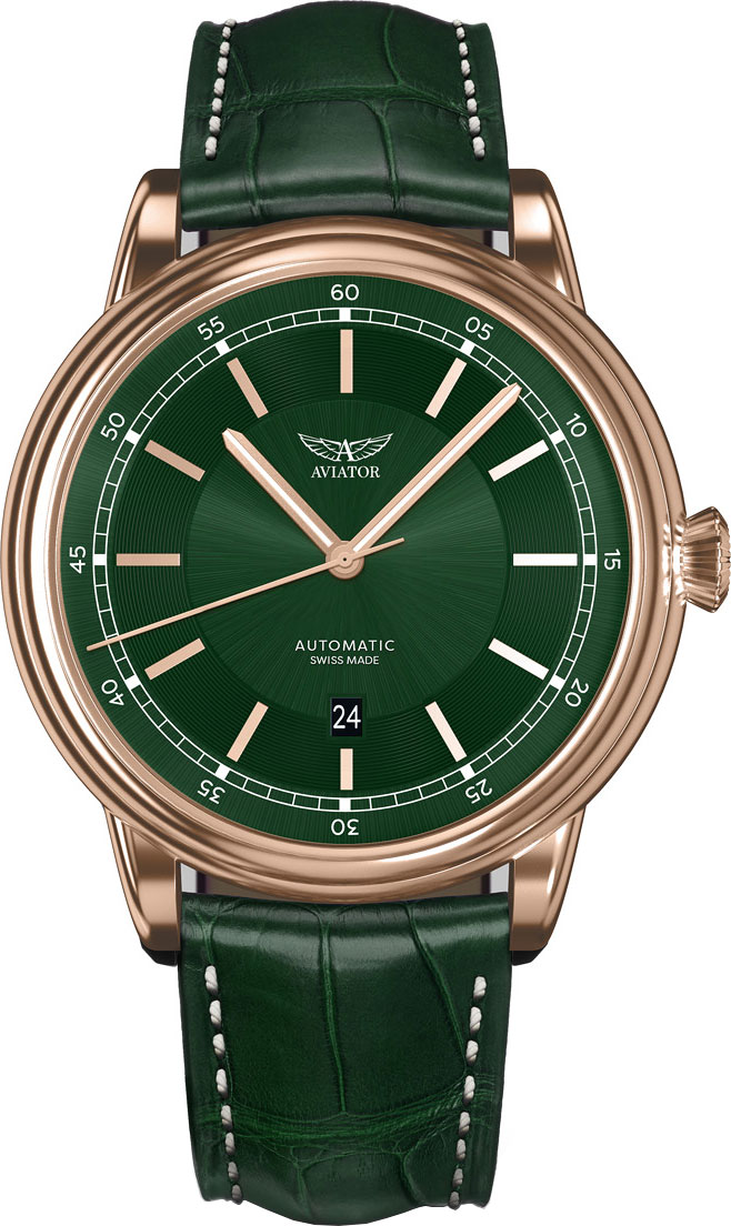 Douglas DC-3. Лимитированная серия. Коллекция Douglas была разработана в честь известного американского пассажирского самолета Douglas DC-3. В механизме 26 камней, частота 28800 полуколебаний в час. Калибр управляется регулятором Etachron , который обеспечивает высокую точность хода как на земле, так и над землей. Запас хода 38 часов. Противоударное устройство оси баланса Incabloc. Циферблат выполнен по технологии sun-ray (солнечные лучи). Часовые метки выполнены в виде штрихов. Полированный стальной корпус. Кожаный ремешок с тиснением под крокодила, с раскладывающейся застежкой. Прозрачная задняя крышка украшена имитацией функции контроля управления хвоста самолета. Ротор механизма указывает на градусы, как в авиационном приборе триммер. Калибр SELLITA SW200.