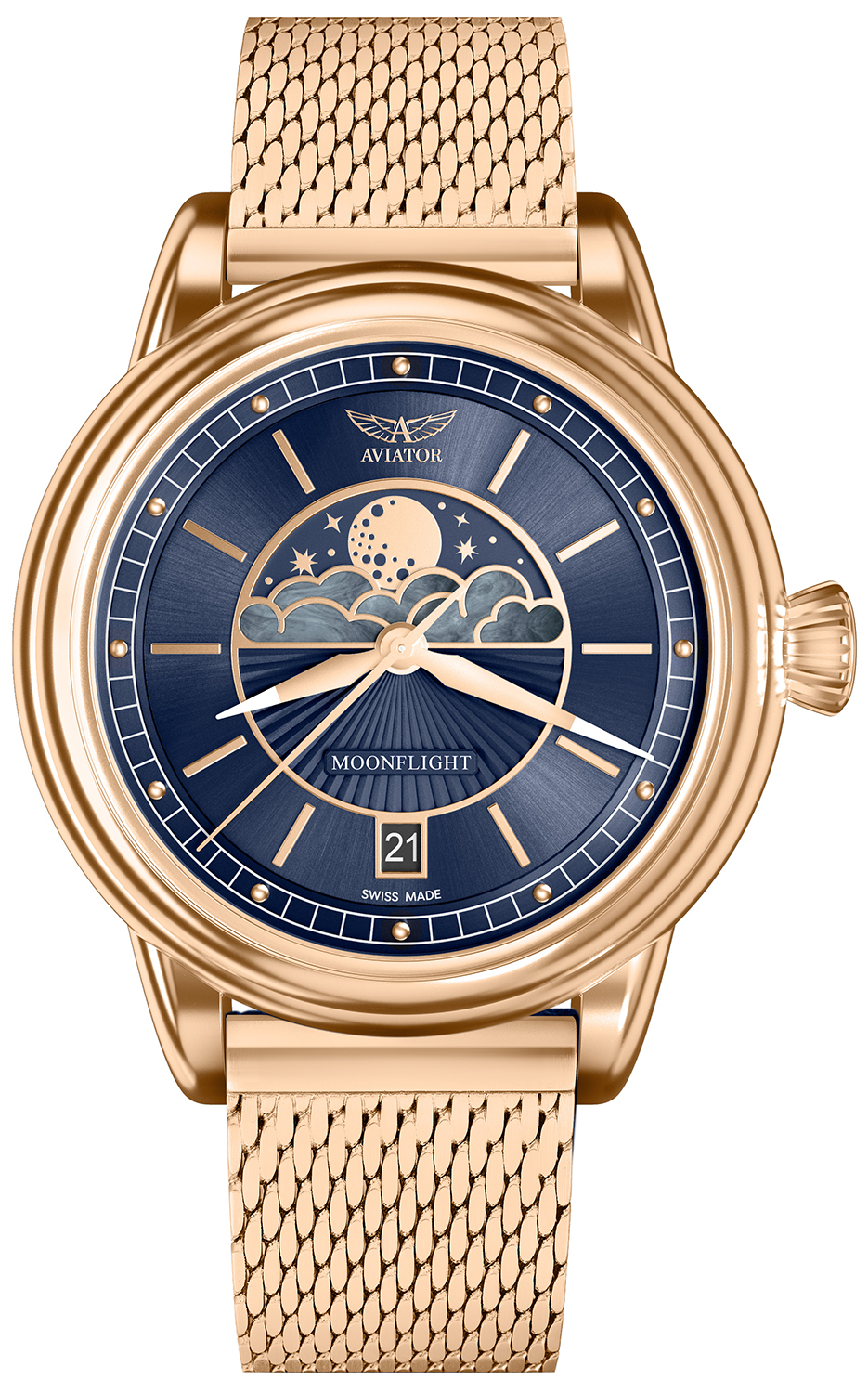В моделях Aviator Douglas MoonFlight классические элементы стиля ар-деко эффектно дополняются индикацией фаз Луны. Источником вдохновения для создания коллекции послужил легендарный пассажирский самолет середины 30-х годов прошлого века Douglas