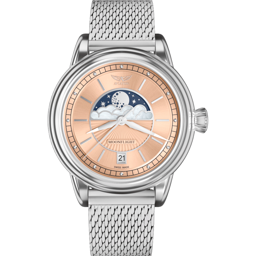 Элегантные часики с интересным дизайном станут настоящим украшением образа нежной особы. Douglas MoonFlight. Лимитированная серия - 950 экземпляров. Коллекция часов Douglas была разработана в честь известного американского пассажирского самолета Douglas DC-3. В механизме 13 камней. Окошко даты. Облака на циферблате украшены перламутровыми вставками. Антибликовое покрытие на сапфировом стекле позволяет с легкостью узнать время даже при ярком солнце. Задняя крышка украшена гравировкой. Рифленая заводная головка с двойной прокладкой. Кожаный текстурированный ремешок с возможностью быстрой замены.