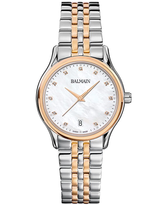 Тип Наручные часы Пол Женские Страна Швейцария Механизм Кварцевый Крепление Браслет Стекло Сапфировое Форма корпуса Круг Размер корпуса, мм 32 Материал корпуса Сталь Цвет корпуса Комбинированный Водозащита, м 50 Циферблат Стрелки Цифры Метки Цвет циферблата Белый Украшения Бриллианты,Перламутр -