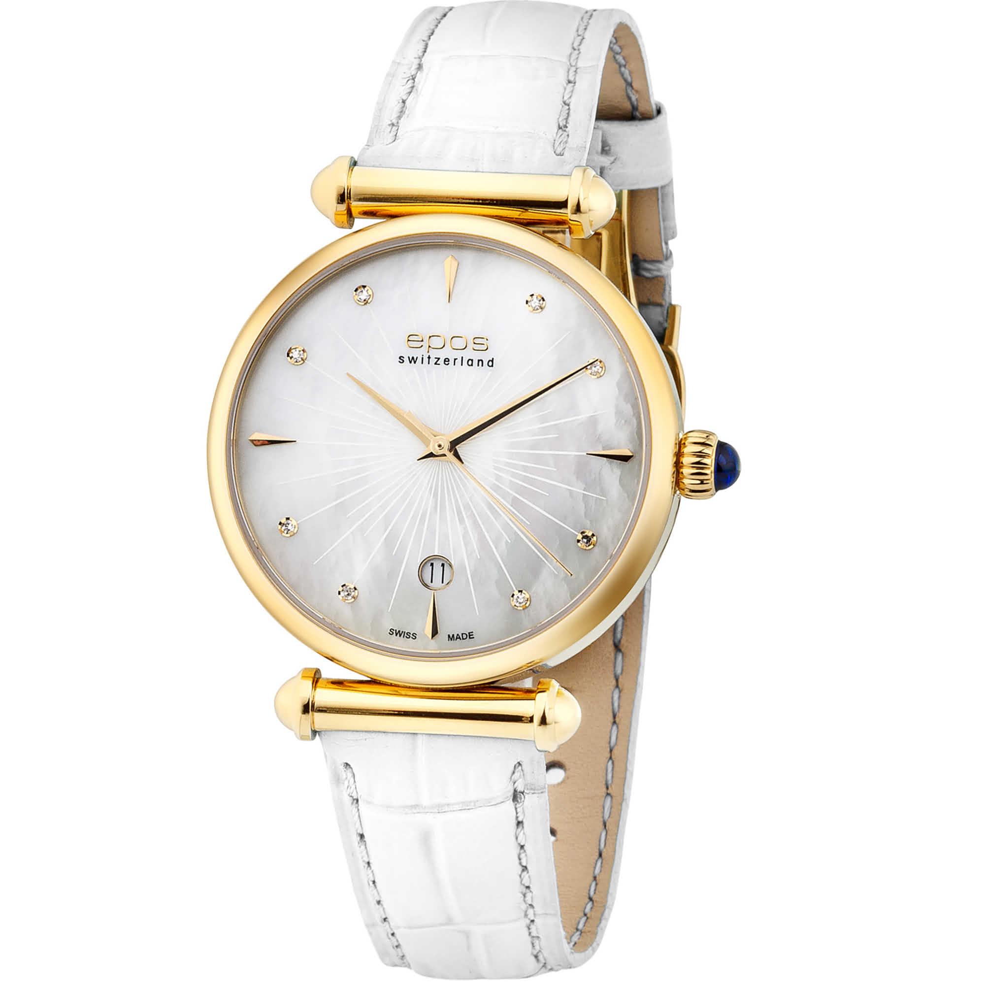 Тип Наручные часы Пол Женские Страна Щвейцария Механизм Кварцевый Крепление Ремешок Стекло Сапфировое Форма корпуса Круг Размер корпуса, мм 34 Материал корпуса Сталь Цвет корпуса Жёлтое золото Водозащита, м 30 Циферблат Стрелки Цифры Метки Цвет циферблата Белый Украшения Бриллианты,Перламутр -