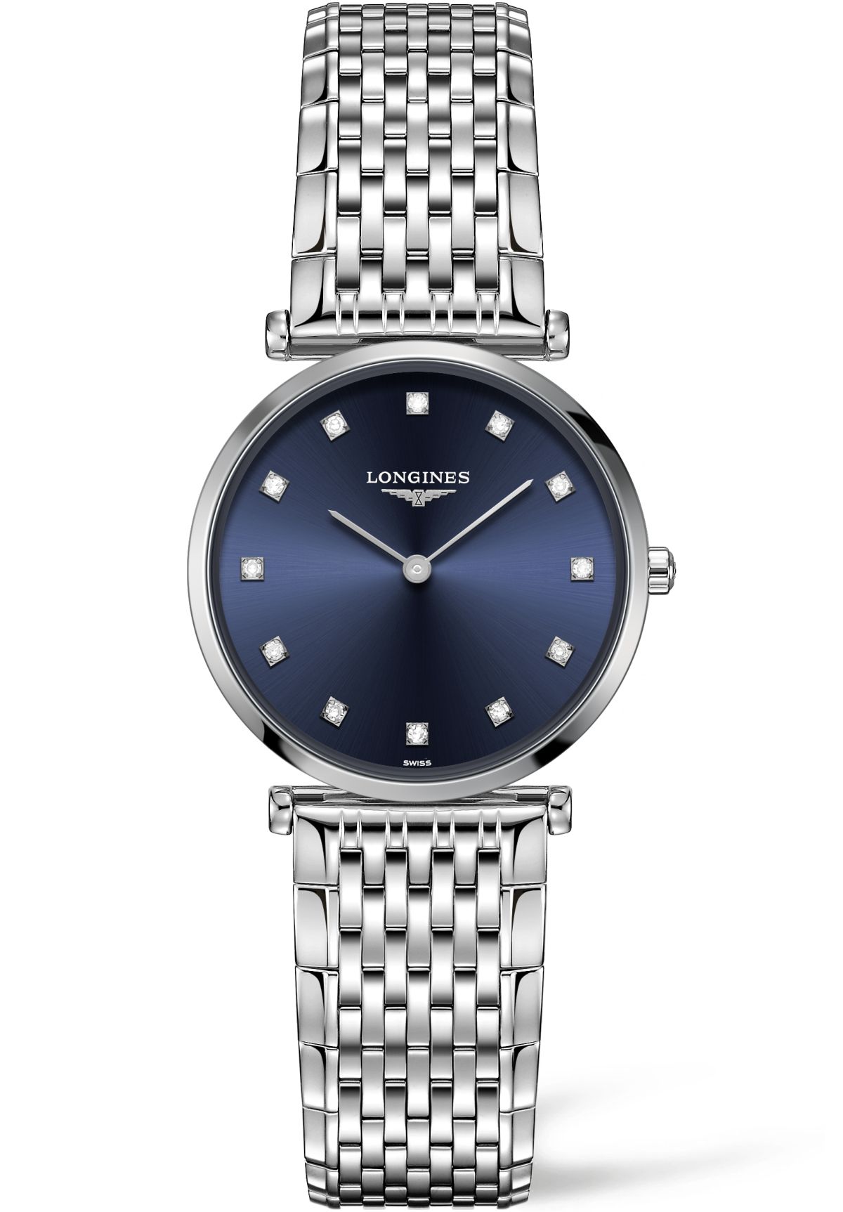 La Grande Classique — символ классической элегантности и совершенства часов Longines. Характерными особенностями коллекции являются тонкий корпус и большое разнообразие версий. Выразительная и классическая женская кварцевая модель, индикация часов и минут центральными стрелками, 12 бриллиантов на циферблате ( 0.048 ct)