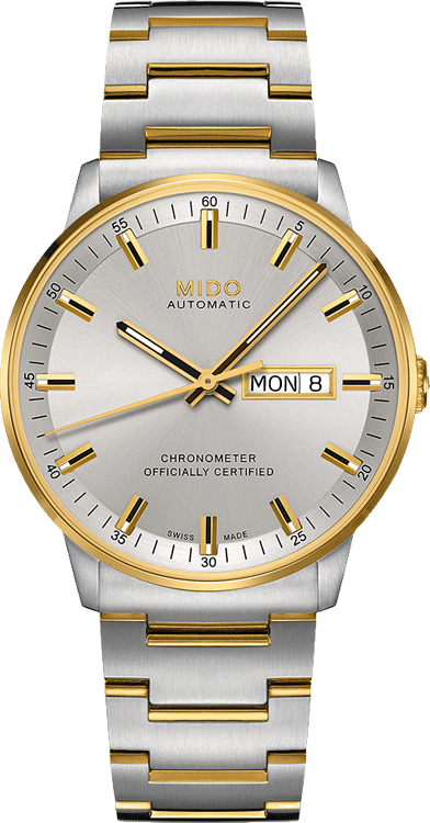 Тип Наручные часы Пол Мужские Страна Швейцария Механизм Механика, Автоподзавод Крепление Браслет Стекло Сапфировое Форма корпуса Круг Размер корпуса, мм 40 Материал корпуса Сталь Цвет корпуса Комбинированный Водозащита, м 50 Циферблат Стрелки Цифры Метки Цвет циферблата Серебристый Дополнительные функции Дата День недели Иллюминация стрелок Прозрачная задняя крышка Увеличенный запас хода Хронометр -