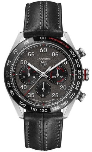 СПЕЦИАЛЬНАЯСЕРИЯ ЧАСОВ TAGHEUER CARRERA PORSCHE⠀ Уникальный альянс двух легендарных марок, нацеленных только на победу. Спортивный дух отражающий суть двух самых популярных и динамичных брендов в мире роскоши ⠀ Корпус часов украшает керамический безель с тахиметрической шкалой и надписью Porsche красного цвета. Циферблат, специально созданный для этих часов, повторяет фактуру асфальта гоночного трека, а цифры перенесены с приборной панели автомобилей Porsche