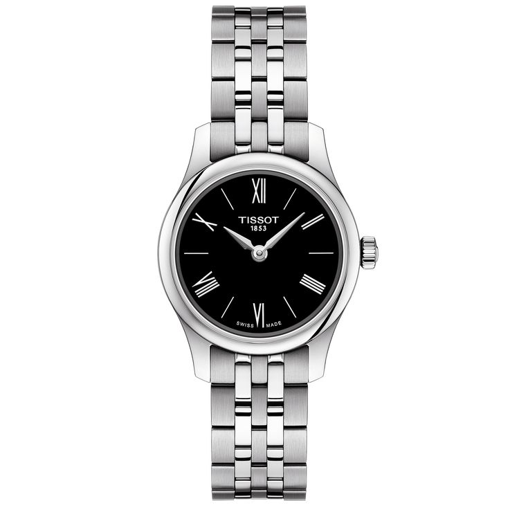 Тип Наручные часы Пол Женские Страна Швейцария Механизм Кварцевый Крепление Браслет Стекло Сапфировое Форма корпуса Круг Размер корпуса, мм 25 Материал корпуса Сталь Цвет корпуса Стальной Водозащита, м 30 Циферблат Стрелки Цифры Метки Цвет циферблата Черный -