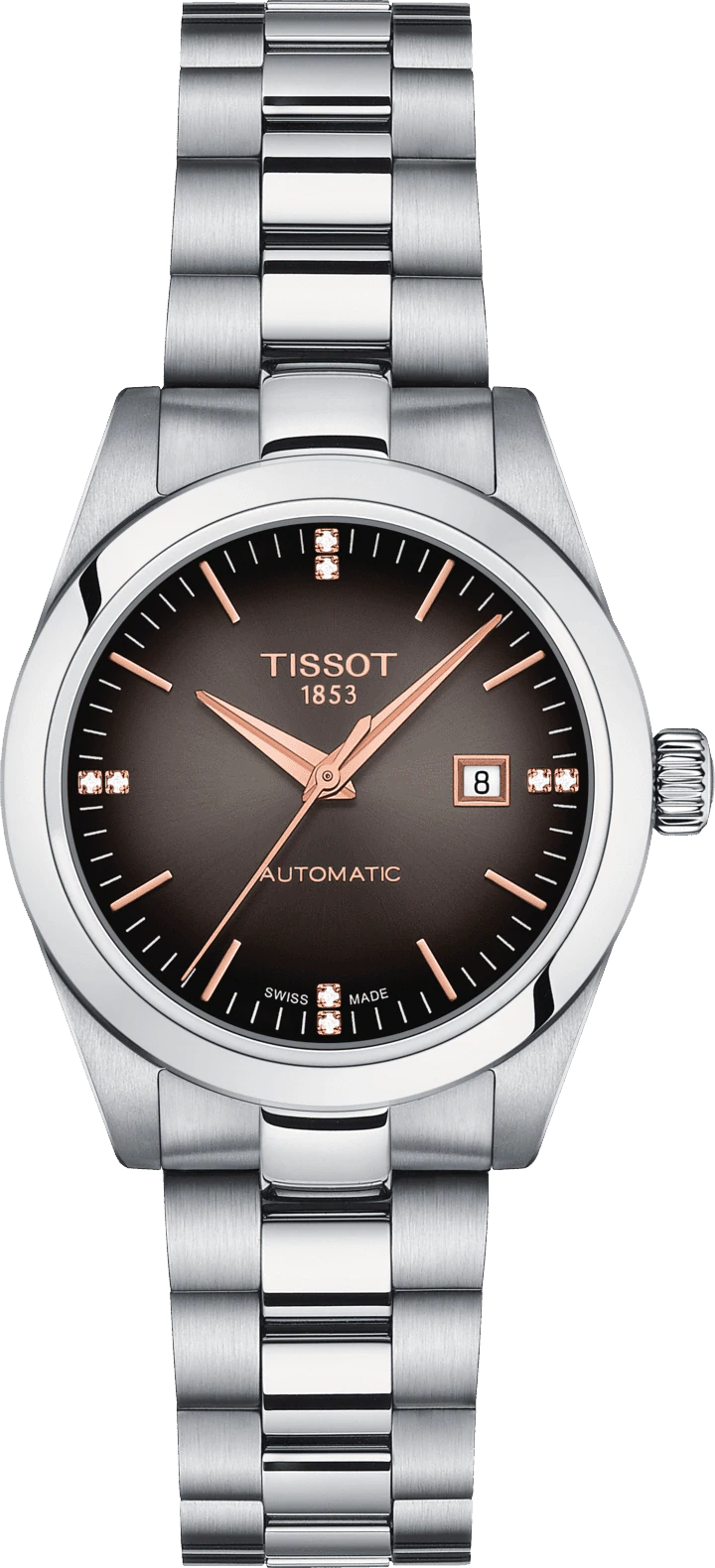 Тип Наручные часы Пол Женские Страна Швейцария Механизм Механика, Автоподзавод Крепление Браслет Стекло Сапфировое Форма корпуса Круг Размер корпуса, мм 29 Материал корпуса Сталь Цвет корпуса Стальной Водозащита, м 100 Циферблат Стрелки Цифры Метки Цвет циферблата Черный Украшения Бриллианты -