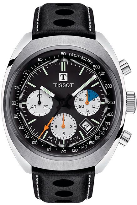 Часы Heritage 1973 c неповторимым внешним видом отражают спортивные традиции Tissot. Сложная тахиметрическая шкала напоминает о техническом аспекте гонок, а ремешок из перфорированной кожи о рулях классических гоночных автомобилей. Мужские часы-хронограф с секундомером и тахиметром. В механизме 27 камней, частота 28800 полуколебаний в час. Запас хода 60 часов. Стальной корпус. Метки в виде штрихов. Окошки даты находится между отметками 4 и 5 часов. Рифленая заводная головка. Прозрачная задняя крышка. Удобный кожаный ремешок с раскладывающейся застежкой.