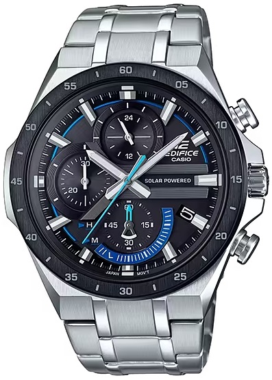 Тип Наручные часы Пол Мужские Страна Япония Механизм Солнечная батарея Крепление Браслет Стекло Минеральное Форма корпуса Круг Размер корпуса, мм 47 Материал корпуса Сталь Цвет корпуса Стальной Водозащита, м 100 Циферблат Стрелки Цифры Метки Цвет циферблата Черный Дополнительные функции Дата, Индикация заряда батареи, Хронограф -