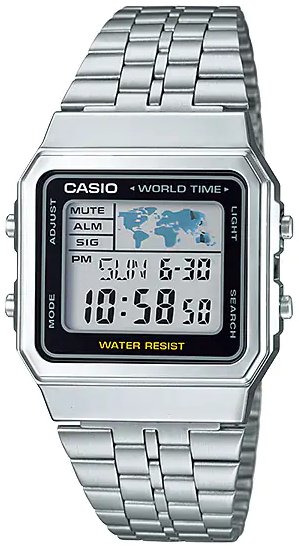 Тип Наручные часы Пол Унисекс Страна Япония Механизм Кварцевый Крепление Браслет Стекло Пластиковое Форма корпуса Квадрат Размер корпуса, мм 34 Материал корпуса Пластик Цвет корпуса Стальной Водозащита, м 30 Циферблат Цифровой дисплей Цифры Арабские цифры Цвет циферблата Черный Дополнительные функции Будильник, Вечный календарь, Дата, День недели, Подсветка, Хронограф -