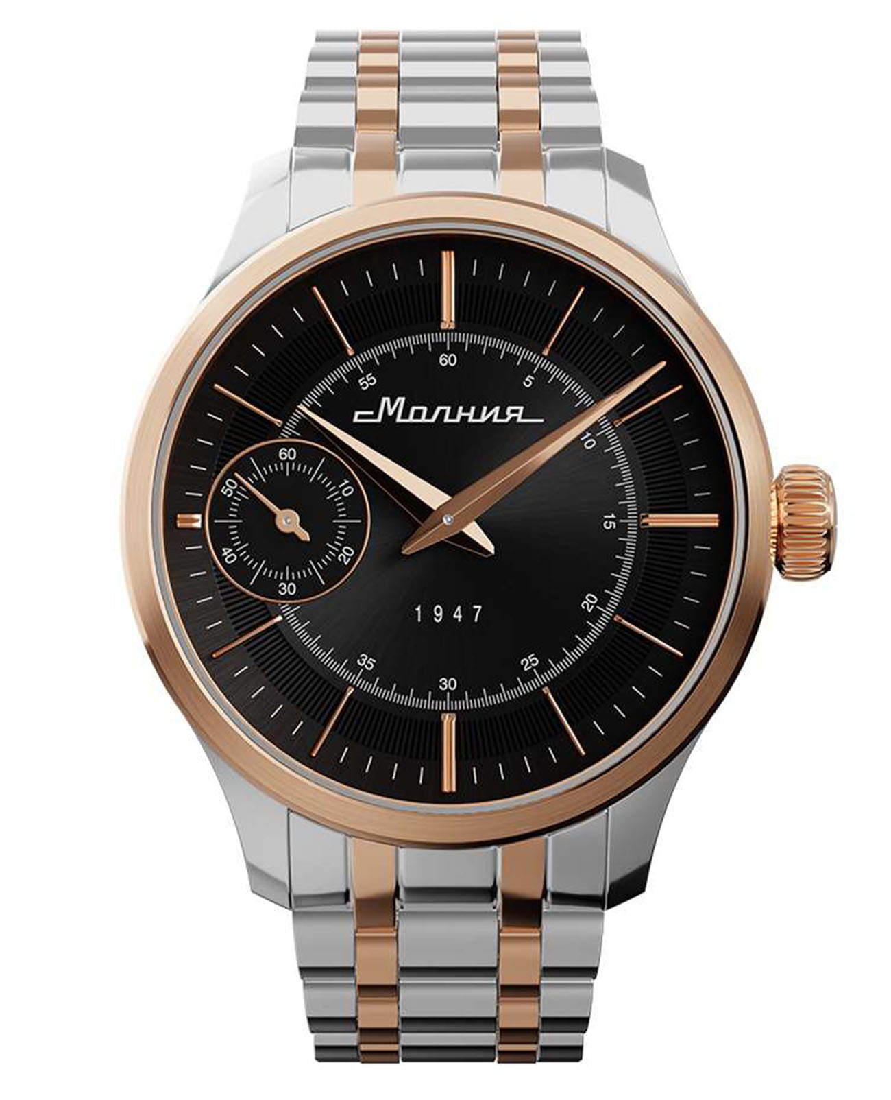 Мужские наручные часы Дебют ТСВ. В механизме 18 камней, частота 18000 полуколебаний в час. Запас хода 41 час. Противоударное устройство балансового узла механизма. Круглый стальной корпус с полированной поверхностью. Циферблат с накладными метками в виде штрихов выполнен по технологии Sunray солнечные лучи и защищен прочным сапфировым стеклом толщиной 2мм. Клиновидные стрелки в стиле Dauphine. Секундная стрелка вынесена на отдельный циферблат. Рифленая заводная головка украшена фирменным логотипом. Завинчивающаяся прозрачная задняя крышка. Стальной браслет с раскладывающейся застежкой и системой быстрой замены.