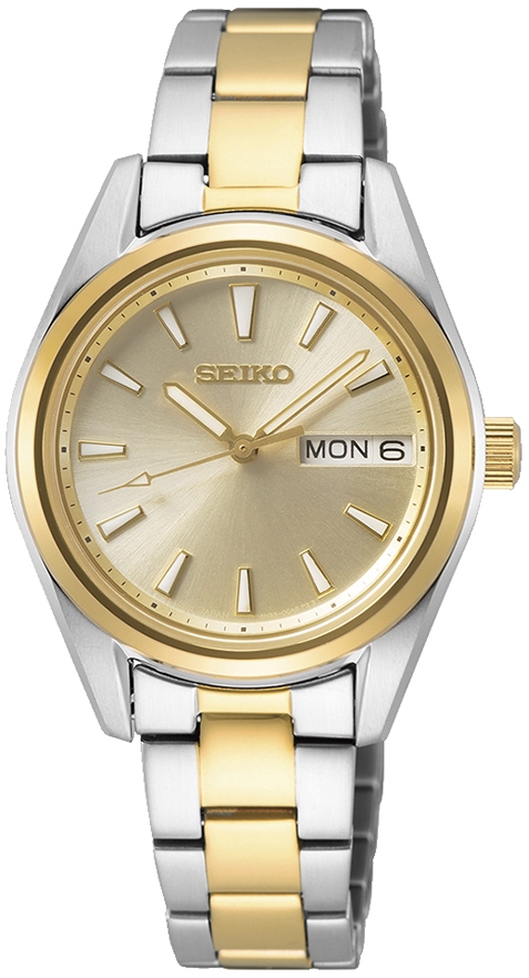 Тип Наручные часы Пол Женские Страна Япония Механизм Кварцевый Крепление Браслет Стекло Сапфировое Форма корпуса Круг Размер корпуса, мм 30 Материал корпуса Сталь Цвет корпуса Комбинированный Водозащита, м 100 Циферблат Стрелки Цифры Метки Цвет циферблата Золотистый -