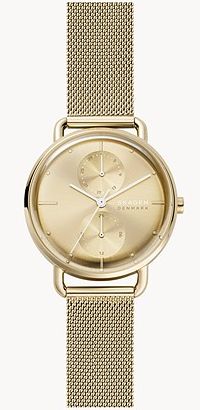 Тип Наручные часы Пол Женские Страна Дания Механизм Кварцевый Крепление Браслет Стекло Минеральное Форма корпуса Круг Размер корпуса, мм 36 Материал корпуса Сталь Цвет корпуса Жёлтое золото Водозащита, м 50 Циферблат Стрелки Цифры Метки Цвет циферблата Жёлтый -
