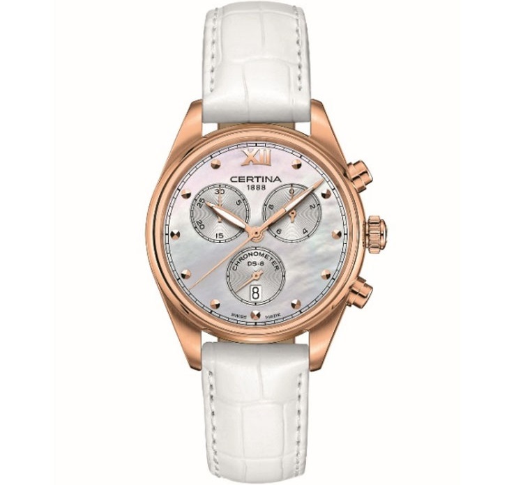 Тип Наручные часы Пол Женские Страна Швейцария Механизм Кварцевый Крепление Ремешок Стекло Сапфировое Форма корпуса Круг Размер корпуса, мм 35 Материал корпуса Сталь Цвет корпуса Розовое золото Водозащита, м 100 Циферблат Стрелки Цифры Метки Цвет циферблата Серебристый Украшения Перламутр Дополнительные функции Дата, Хронограф, Хронометр -