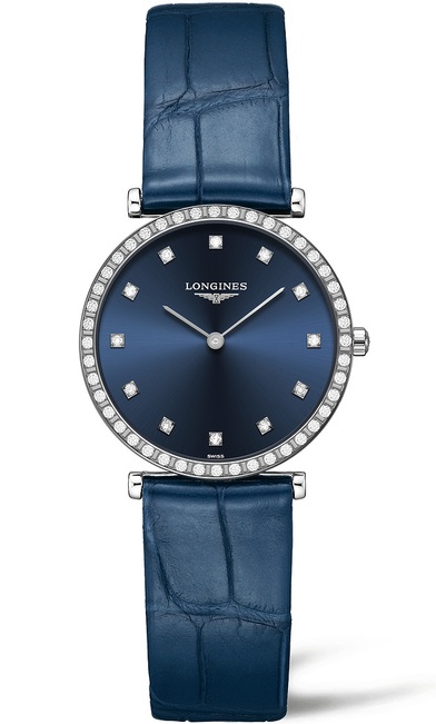 La Grande Classique, брилиаанты по циферблату и безелю La Grande Classique символ классической элегантности и совершенства часов Longines. Характерными особенностями коллекции являются тонкий корпус и большое разнообразие версий. Выразительная и классическая женская кварцевая модель