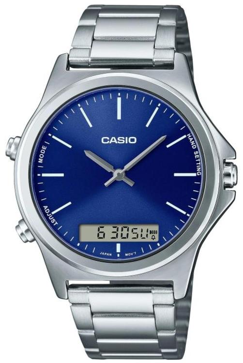 Тип Наручные часы Пол Мужские Страна Япония Механизм Кварцевый Крепление Браслет Стекло Минеральное Форма корпуса Круг Размер корпуса, мм 41 Материал корпуса Сталь Цвет корпуса Стальной Водозащита, м 30 Циферблат Стрелки и дисплей Цифры Метки Цвет циферблата Синий -
